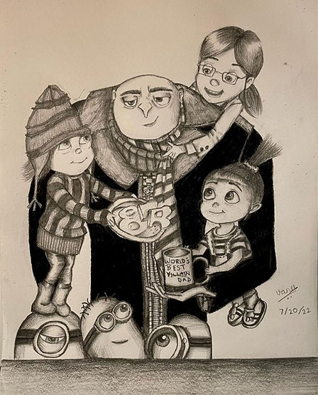 Inspired by Despicable Me and Minions, I completed this drawing using graphite pencils while focusing on intricate details.